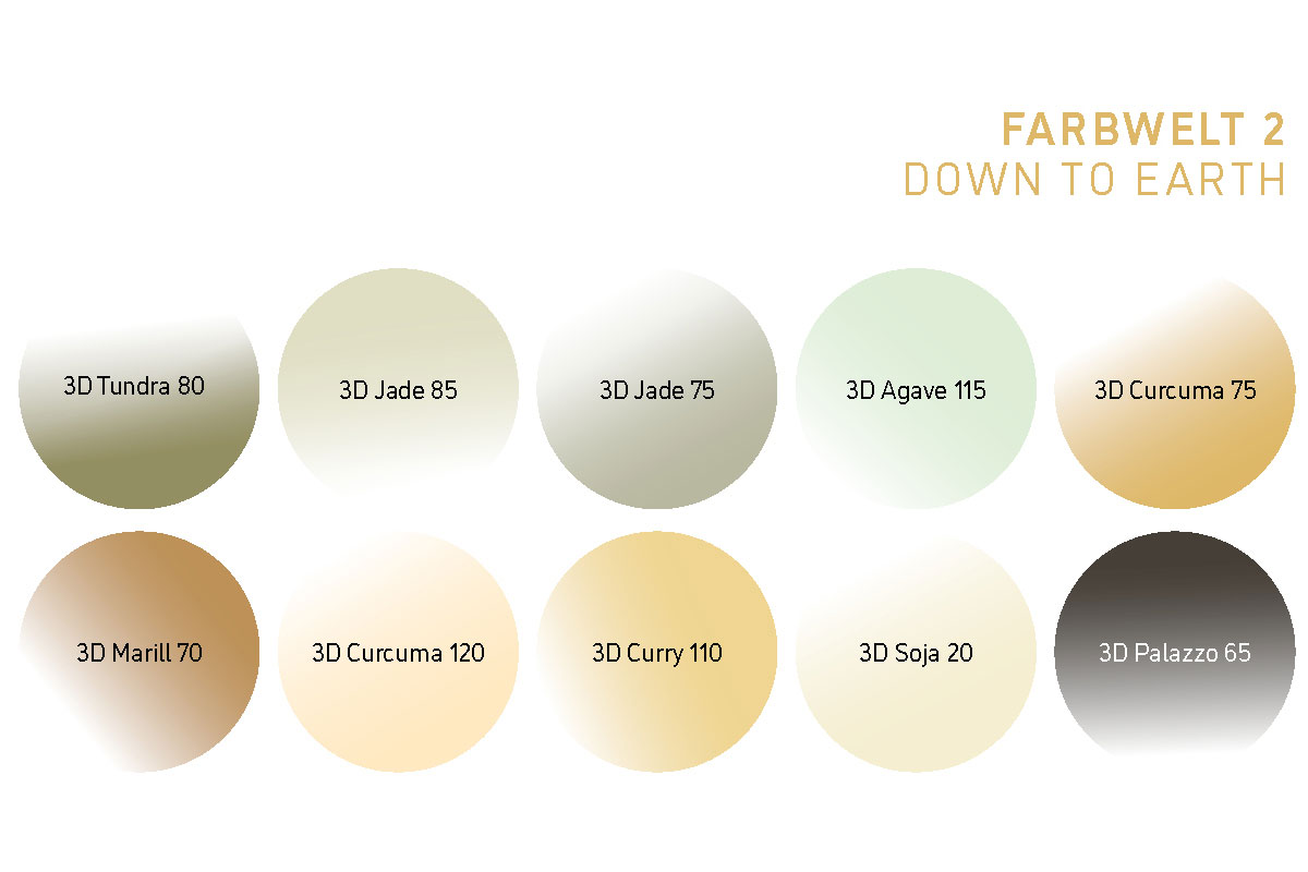 Drei Farbwelten, aus jeweils zehn Nuancen, knüpfen an unseren Trendton COSMIC LIGHT 3D Lavendel 105 an und ermöglichen vielseitige Farbkombinationen.